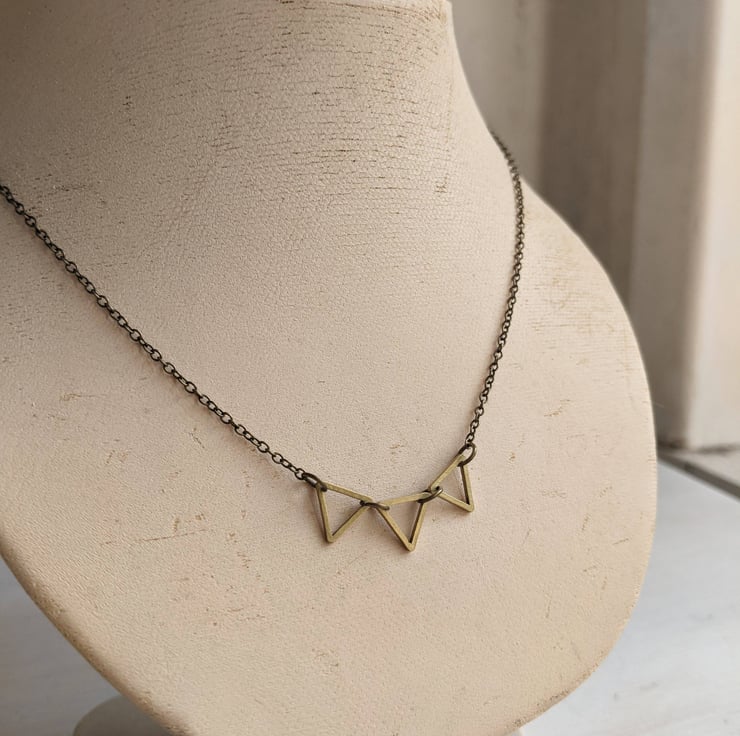 Golden Triangles charm necklace - petite triangles in a row - geometric