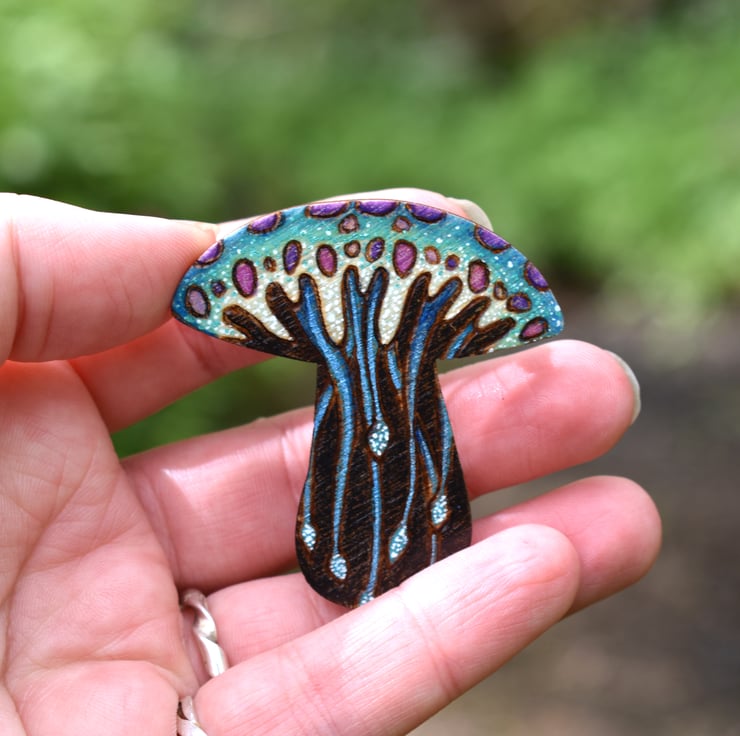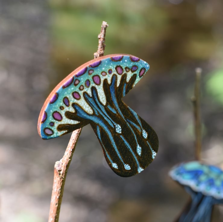 -The brooch is a birch ply toadstool shape.