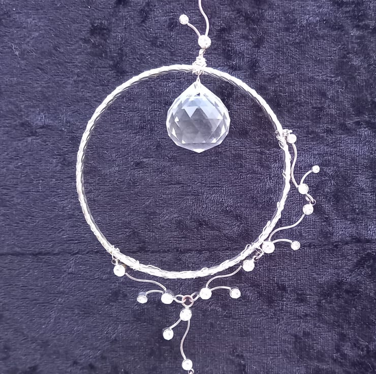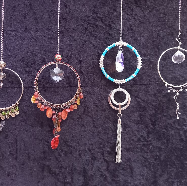 I recycled jewellery and other materials to make this lovely suncatcher length of suncatcher 14cm length of chain 12cm