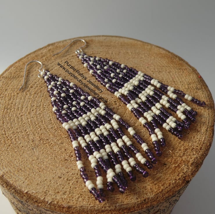 Using glass seed beads, finished on Sterling silver 925 ear wires.