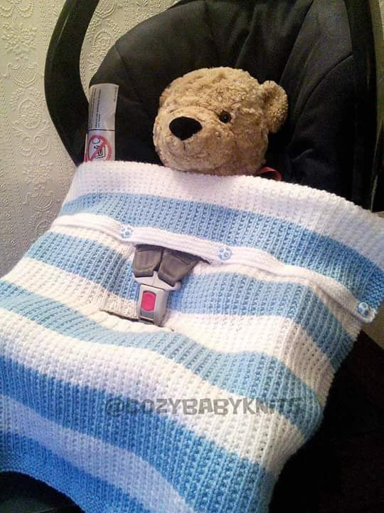 My niece was expecting her first baby. So I decided to make a blanket to match her car seat. I put two holes in the blanket for the harness to go through which means when carrying the car seat the blanket is secure.