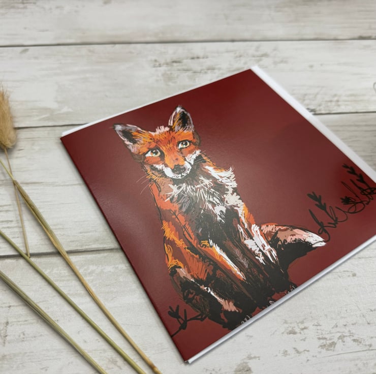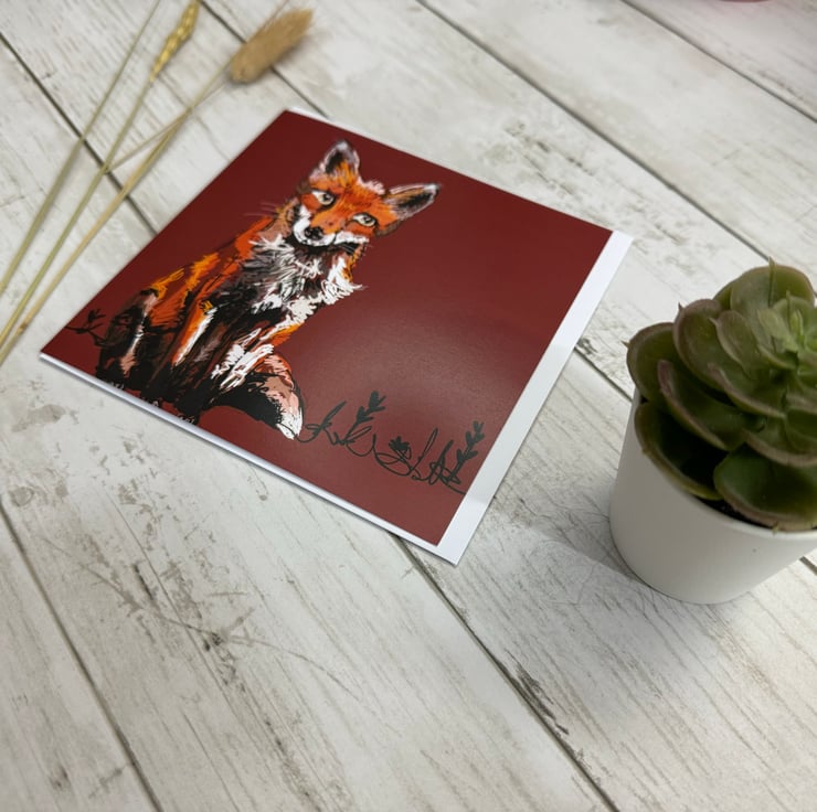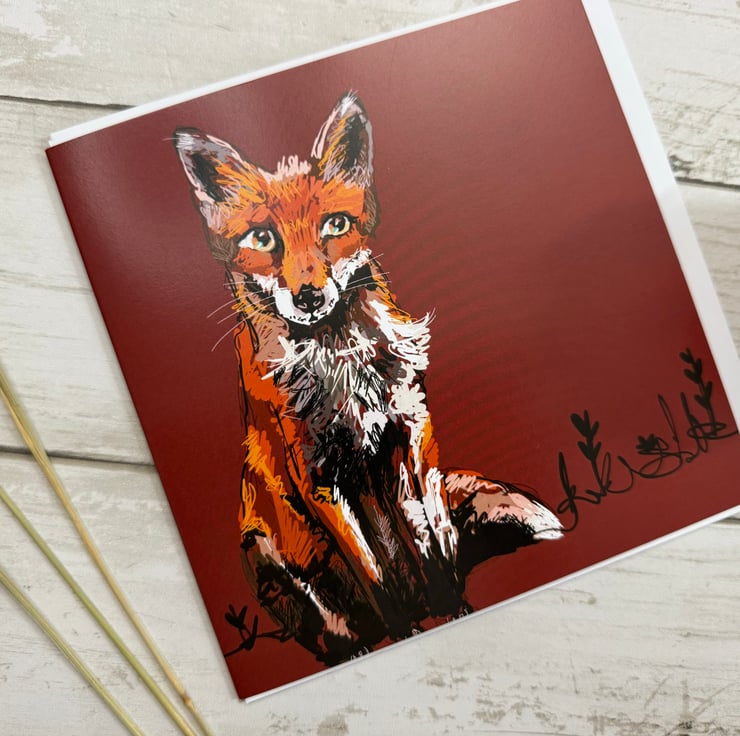 Story: illustration of Fox greetings card is created from an abstracted digital background using my app procreate on my iPad.