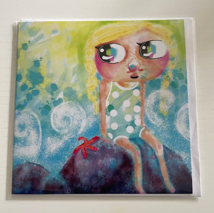 Story: illustration of girl at the beach is created from an abstracted digital background using my app procreate on my iPad.