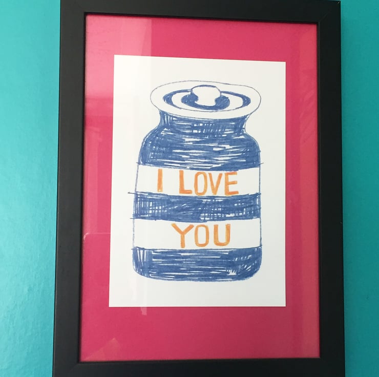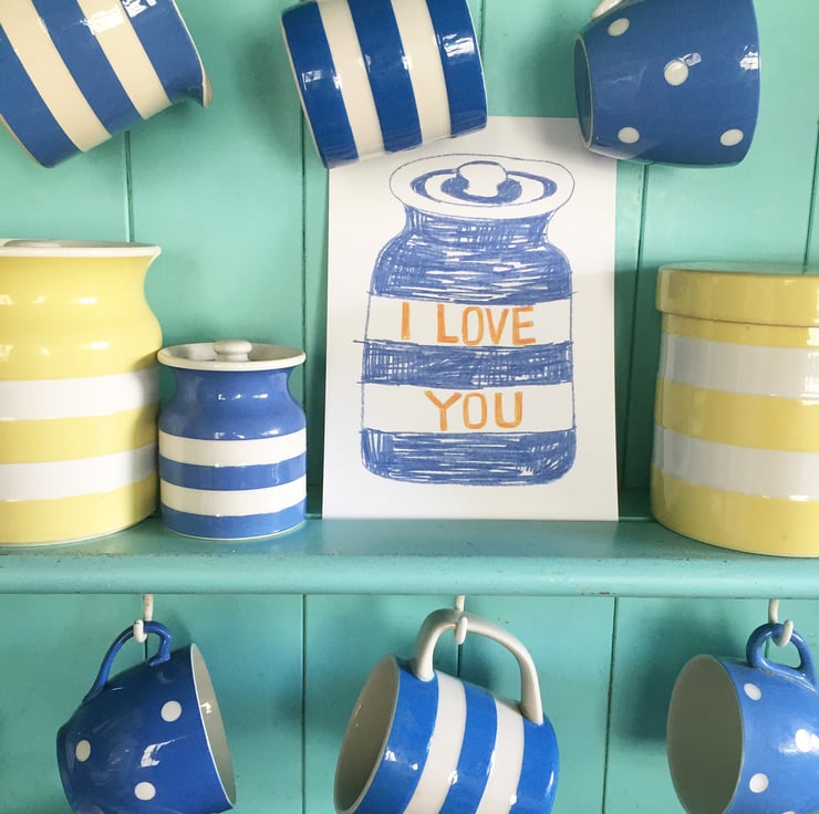 I Love You- Cornishware themed A5 velvety matt finish digital art print on 350gsm card. Unframed.