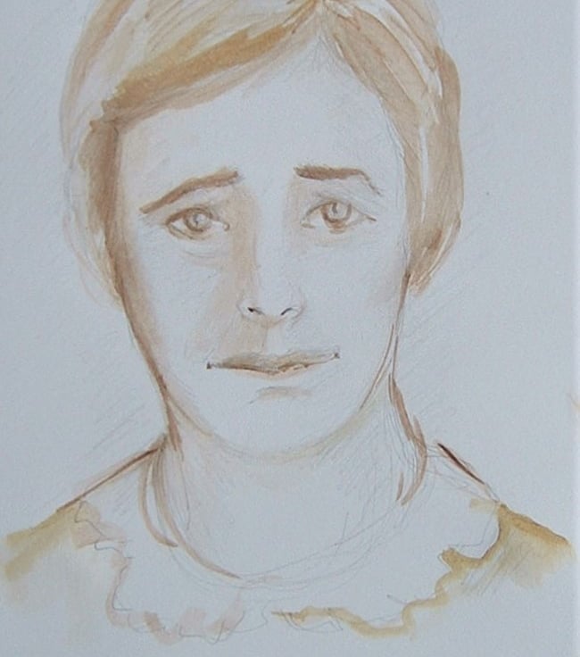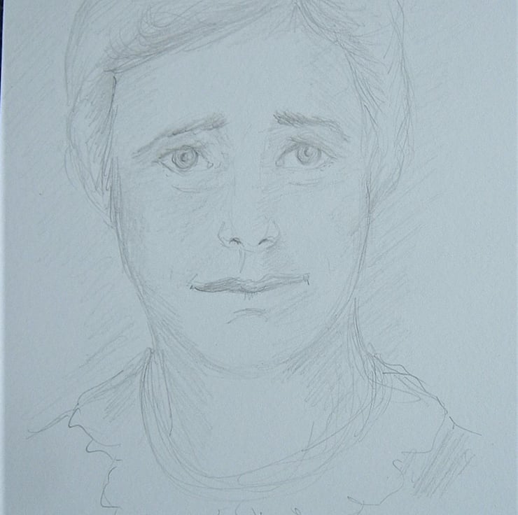 The portrait will measure approximately 8" x 6"" and will be drawn in pencil/watercolour