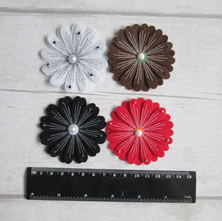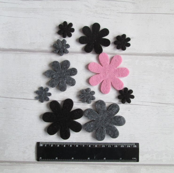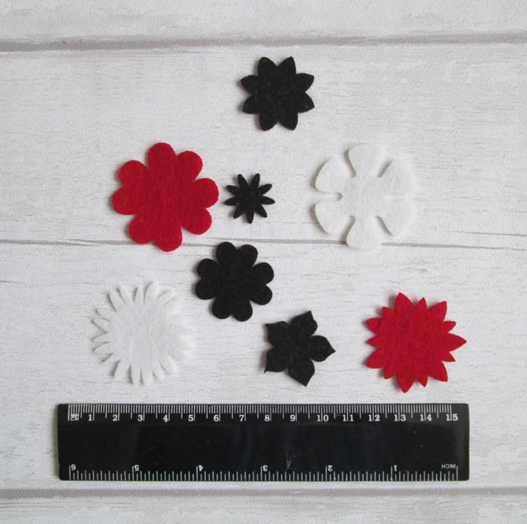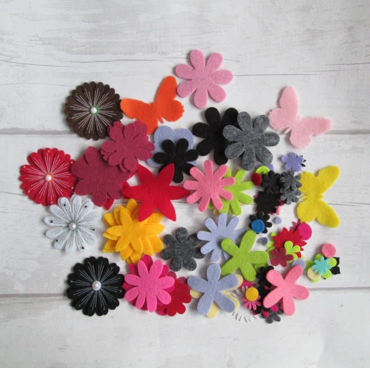 Just right for adding a little colour to a project, this assortment of felt flowers incorporates a range of sizes, styles and shades, and even includes three felt butterflies. The various 'sets' are broken down in the photos and there are a dozen or so additional ones. Ideal for all sorts of crafts including needlework, mixed media and card making.