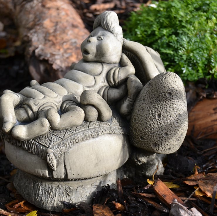 This stone piece has been handmade in Devon, UK. Our skilled team use a specially formulated reconstituted stone to enhance the strength and durability of the pieces, making them suitable for the garden, or home, all year round. Finally a highlighter stain wash is used to lift all the finer details, bringing the characters to life.