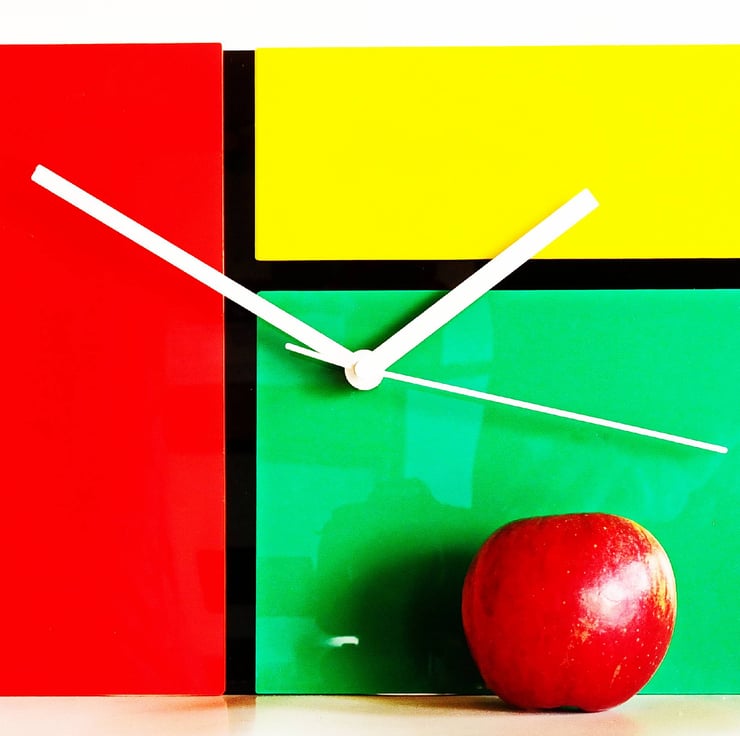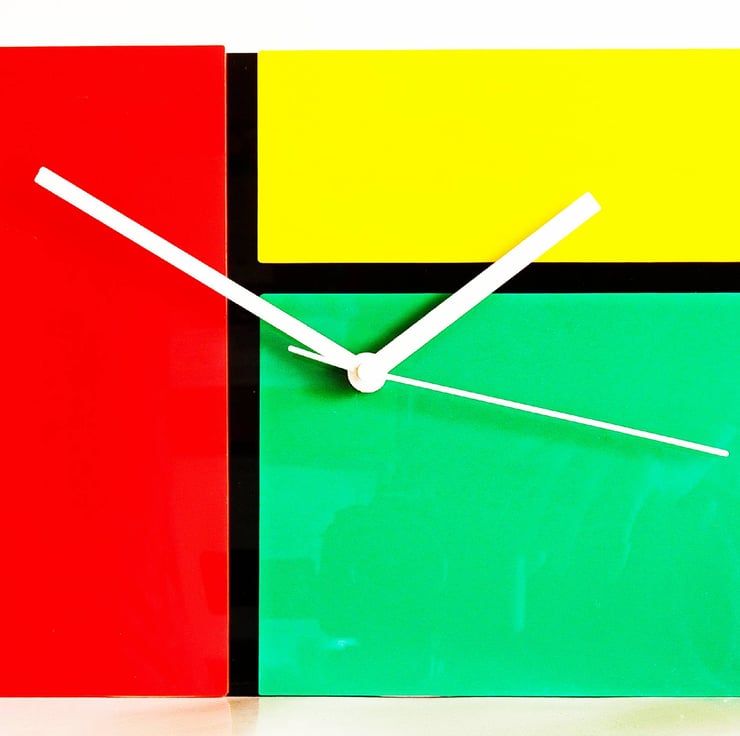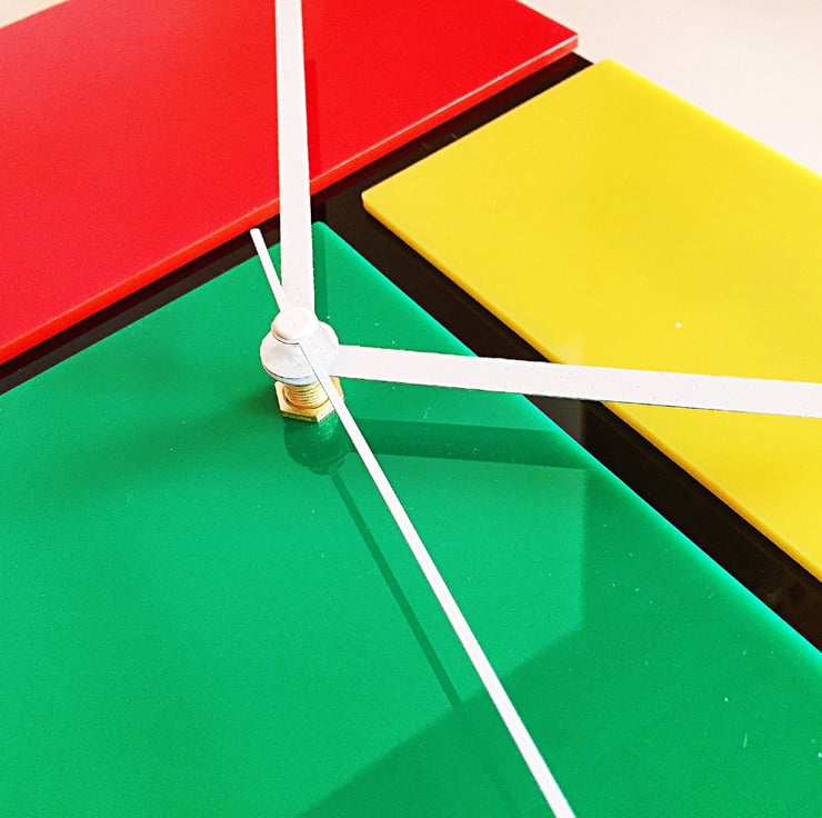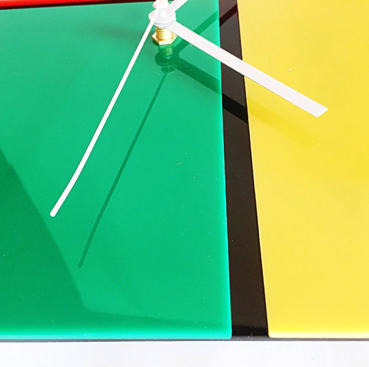 Red, Green, Yellow Acrylic Clock in a Mondrian Style