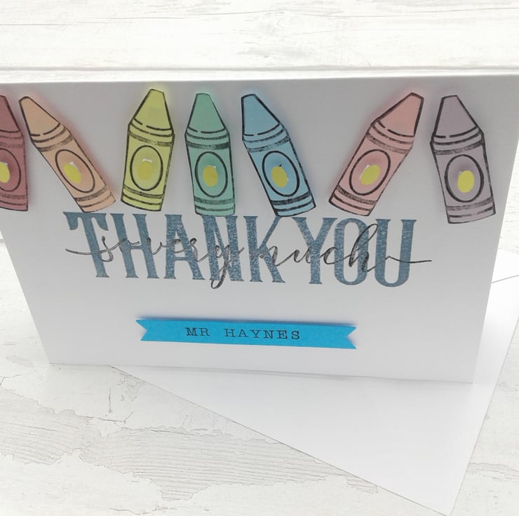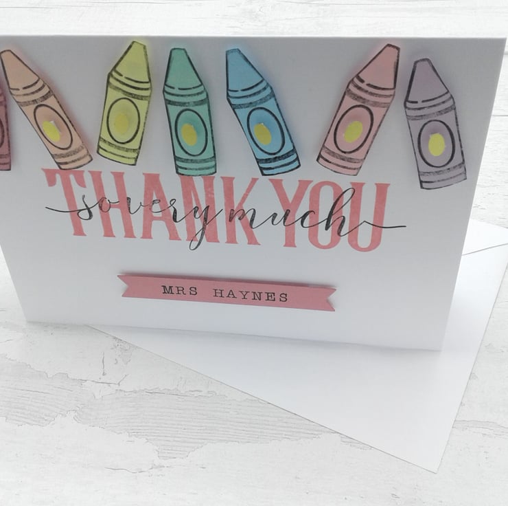 This listing is for a set of 4 personalised thank you cards and envelopes. To show your appreciation to teachers, teaching assistants, pre school staff and nursery staff.