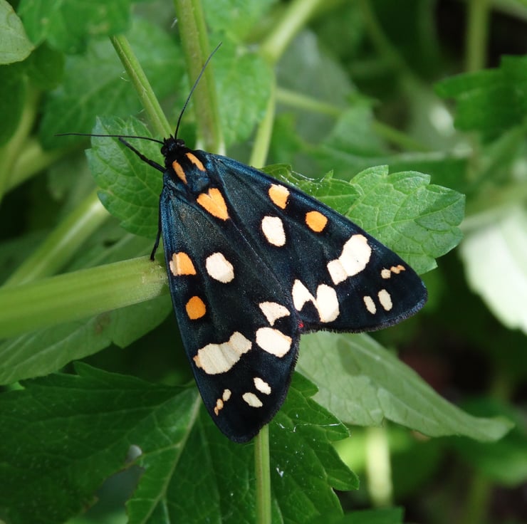 My midsummer moths are inspired by the scarlet tiger moths that visit our garden each year around the time of the summer solstice