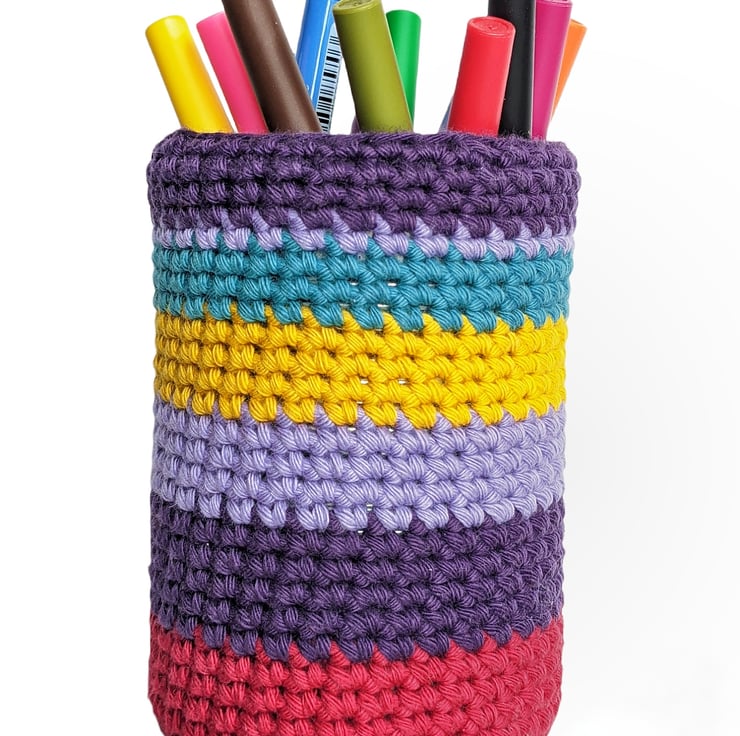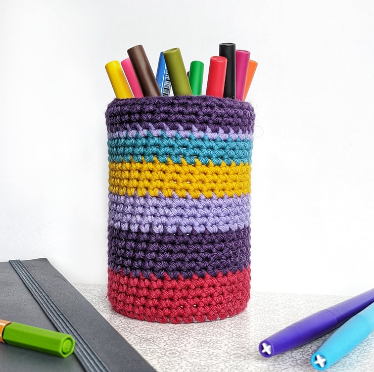 Recycled Can Crochet Pen Pot - Striped