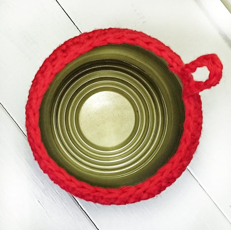 Crocheted cover to go over a recycled can.