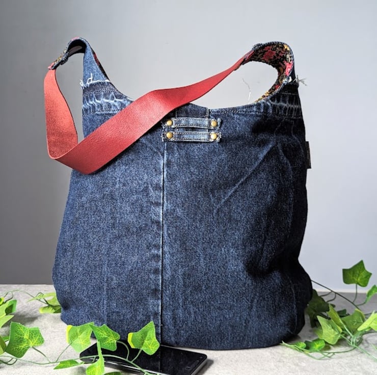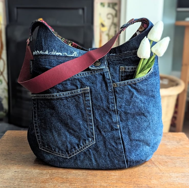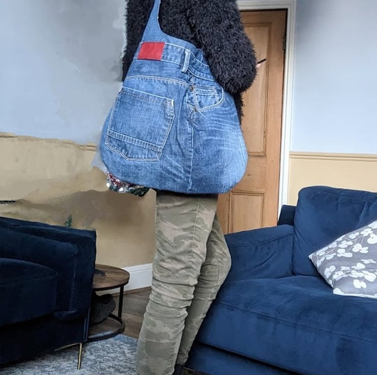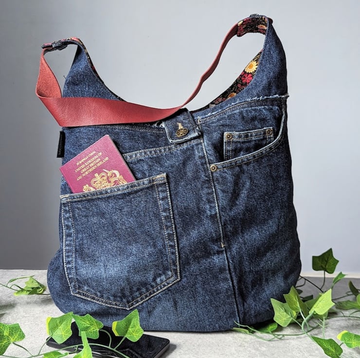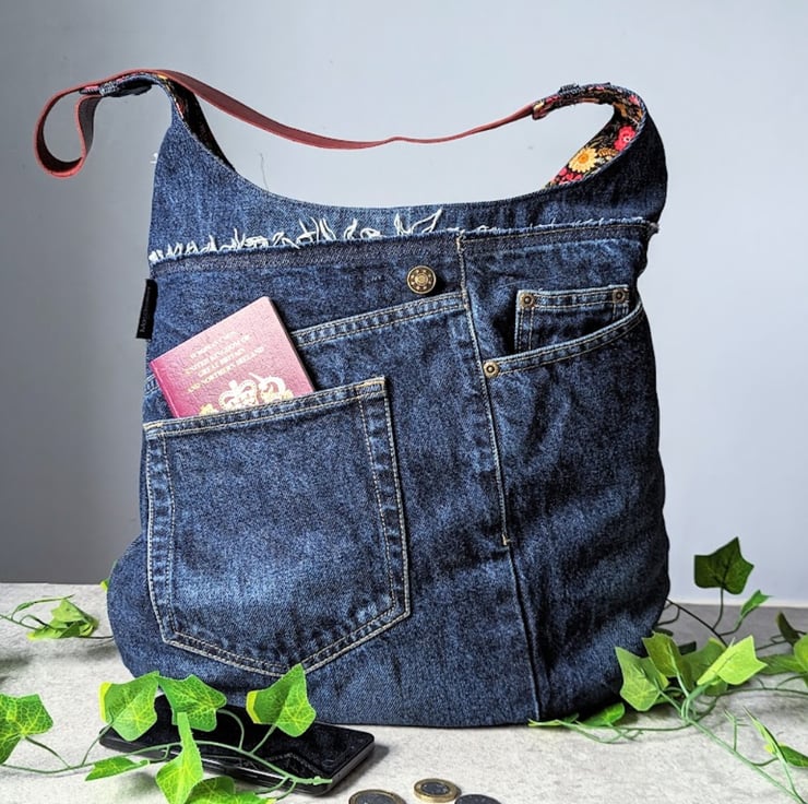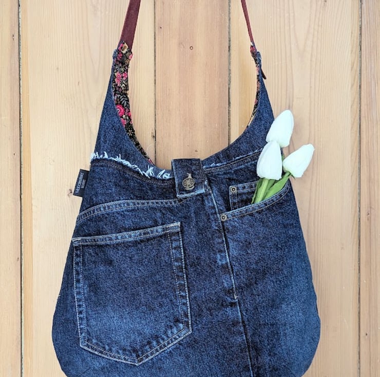 Preloved denim jeans have been repurposed to make this roomy shoulder hobo bag. It’s large and roomy, with a slouchy, casual feel - perfect for throwing in all your everyday essentials and heading out!