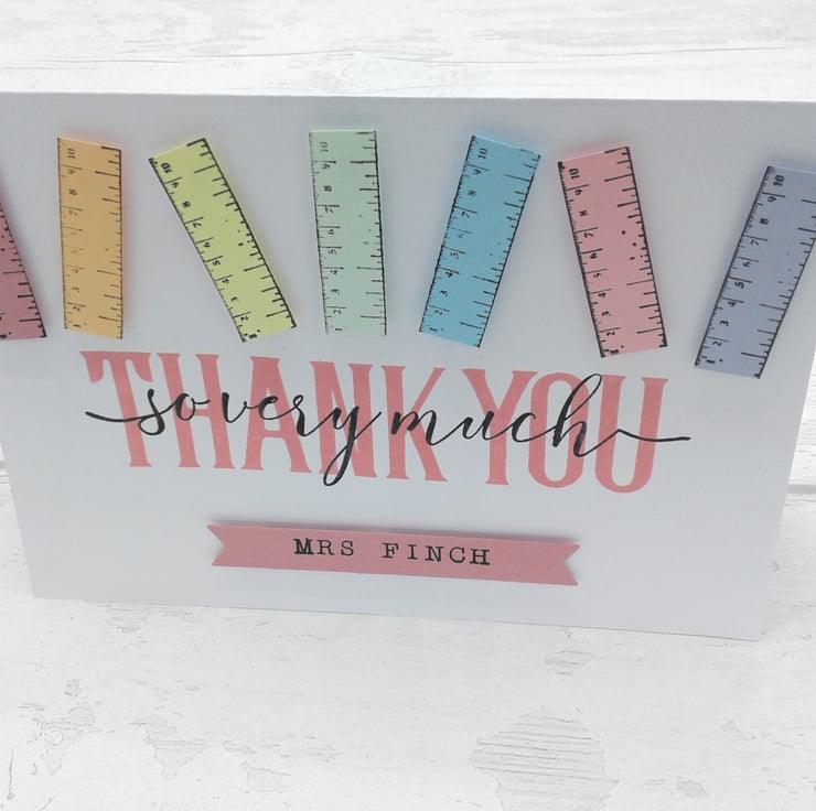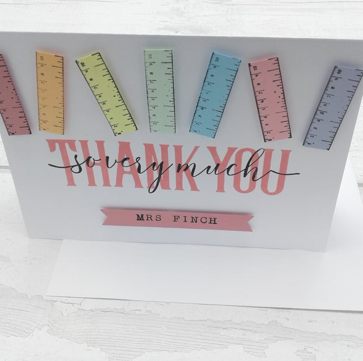 This listing is for a set of 4 personalised thank you cards and envelopes. A lovely way to show your appreciation to teachers, teaching assistants, pre school staff and nursery staff.