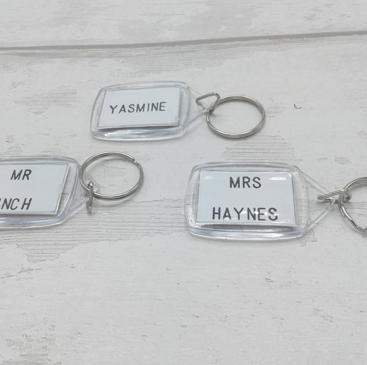 This listing is for a set of 4 personalised key rings. They would make a lovely keepsake for teachers, teaching assistants, pre school staff and nursery staff.