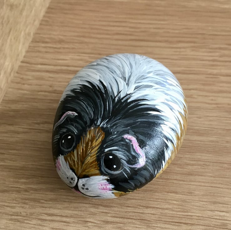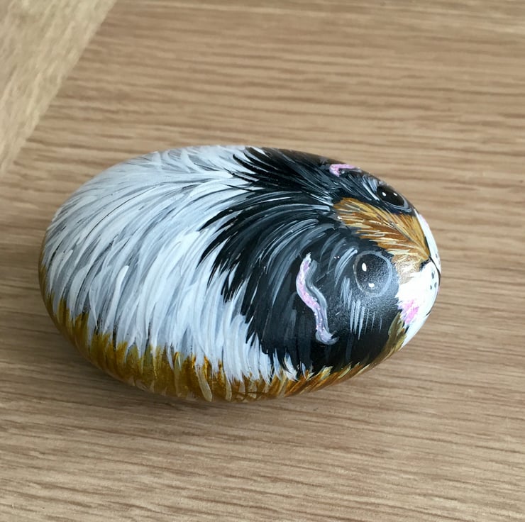 This guinea pig has been hand painted onto a smooth stone and glazed for a glossy protective finish