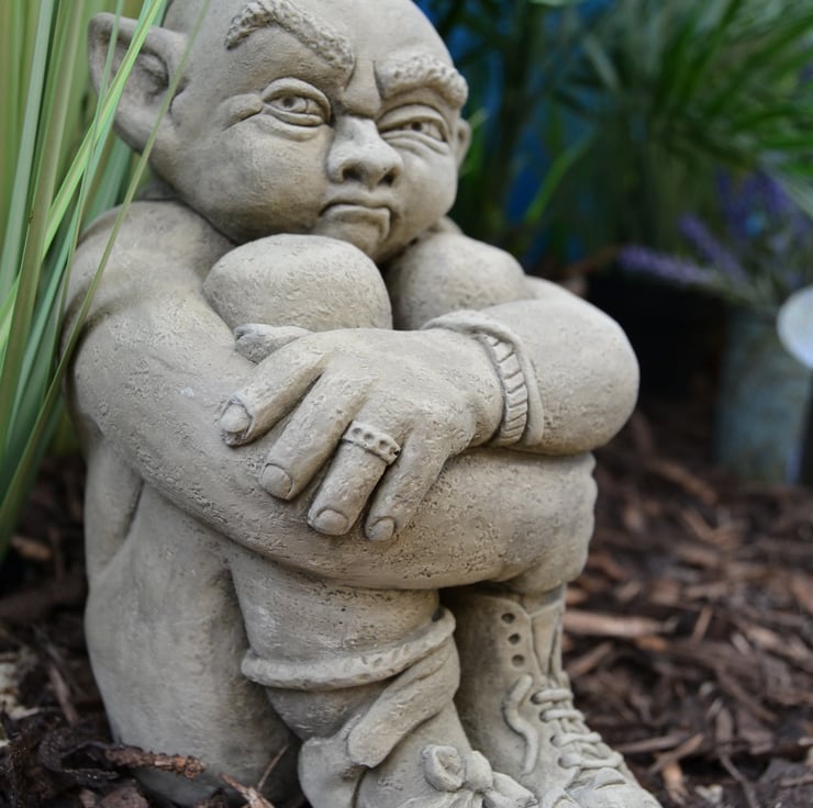 Hugo has been made with the utmost care and attention to detailing, from his intricate plaited hair tail to his upturned toenails, nothing has been spared in this creation . This goblin on guard will keep a watchful eye on your garden and shrubbery.