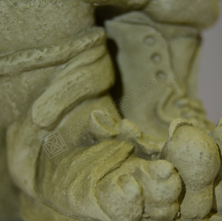 This stone piece has been handmade in Devon, UK. Our skilled team use a specially formulated reconstituted stone to enhance the strength and durability of the pieces, making them suitable for the garden, or home, all year round. Finally a highlighter stain wash is used to lift all the finer details, bringing the characters to life.