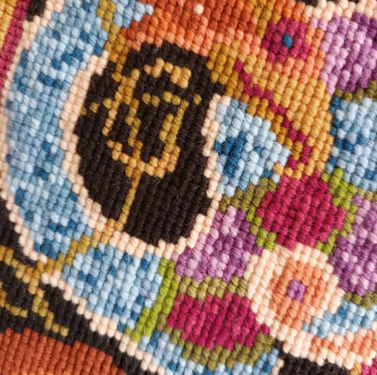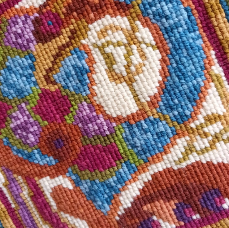 The completed needlework has been created by using Victorian Cross Stitch on 10HPI Canvas in Tapisserie Wool