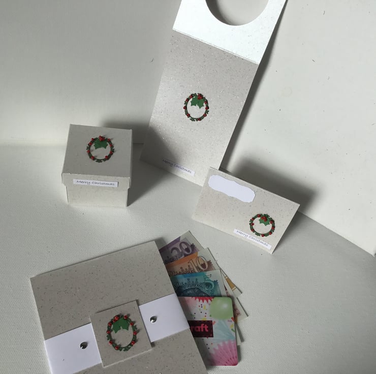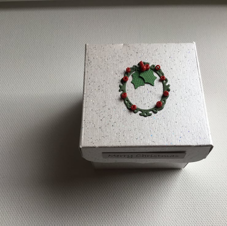 A lovely set of 4 handmade gift box with a tiny handmade wreath topped with tiny bead berries.
