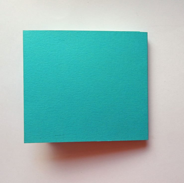 The book's cover is of stiff, smooth turquoise card, with double-folded front edges for strength.