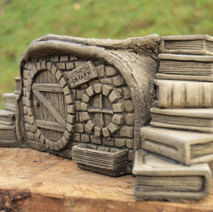 All the details within the library have been carefully handcrafted by our artist from the intricate bricks on its exterior to the tiny books that are set around the sides.