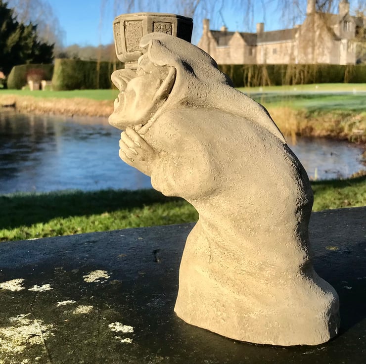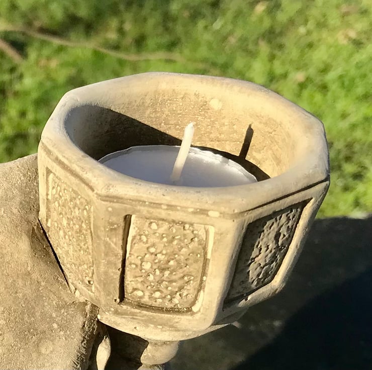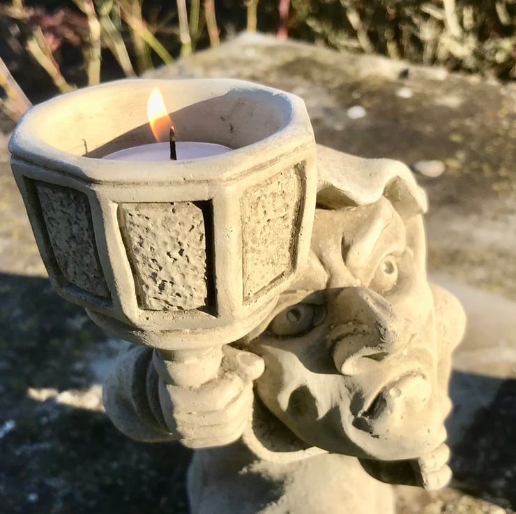 Handcrafted in Devon, UK, using a specially formulated reconstituted stone to enhance the strength and durability of the piece. This statue is designed to hold a standard tea light.