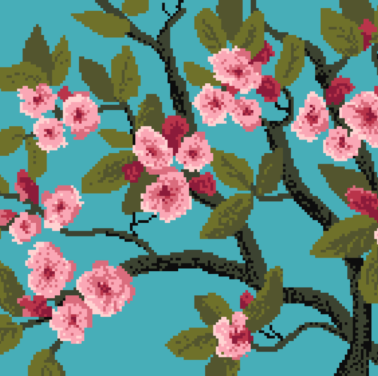 Cross Stitch Pattern Spring Blossoming Almond Tree Symbolising rebirth - Vintage Van Gogh style 1890 by Vivsters - PDF counted chart 049A