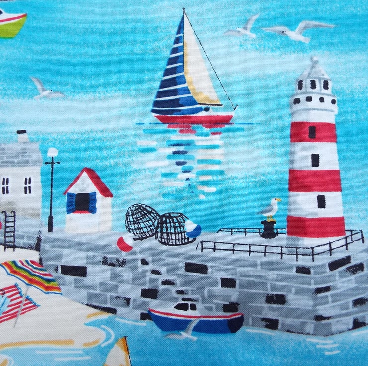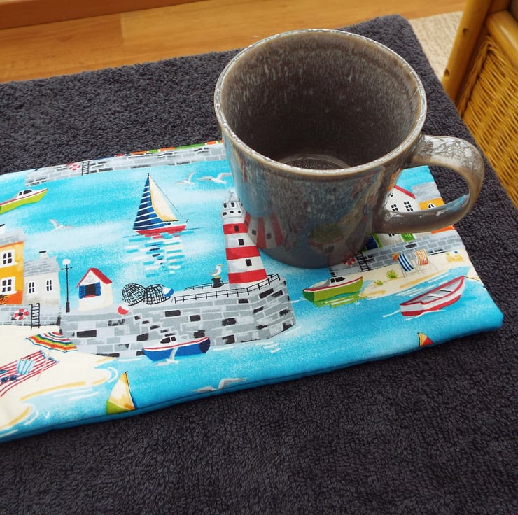This gorgeous seaside mug rug is made from the same quilt quality cotton fabric as the tea cosy (see other listing)