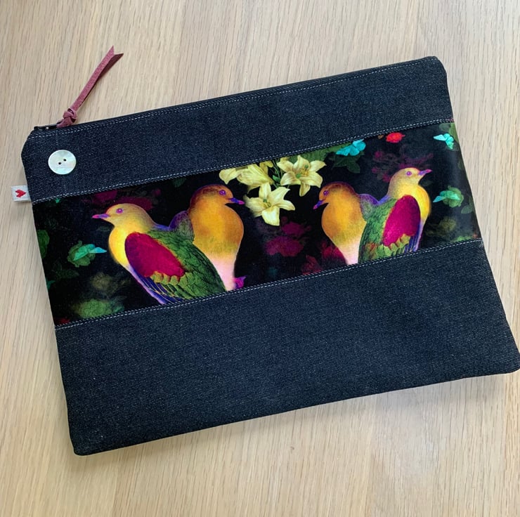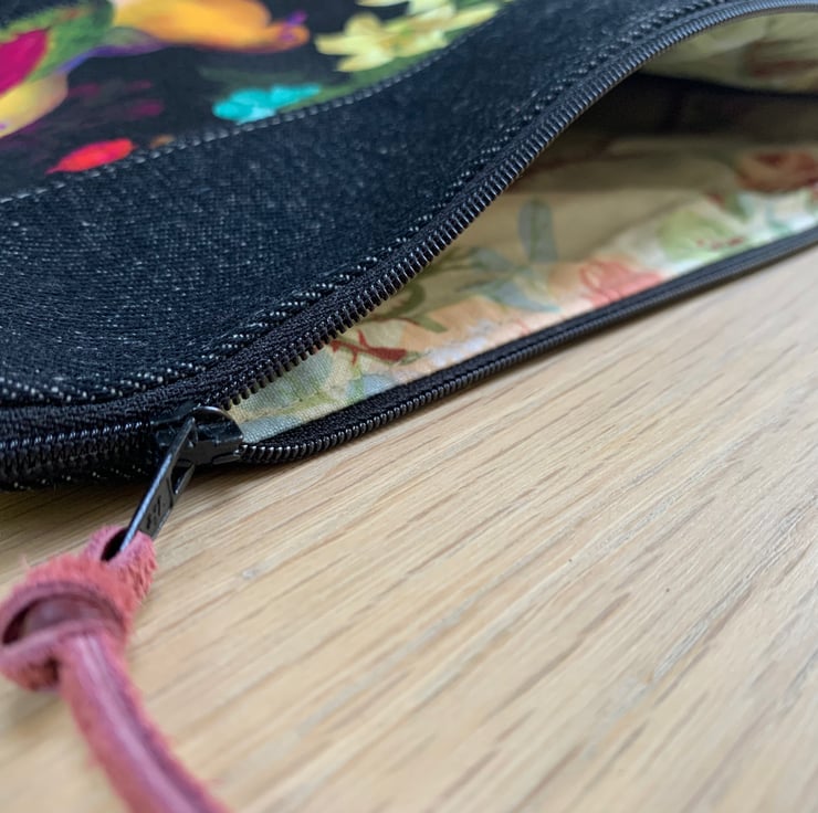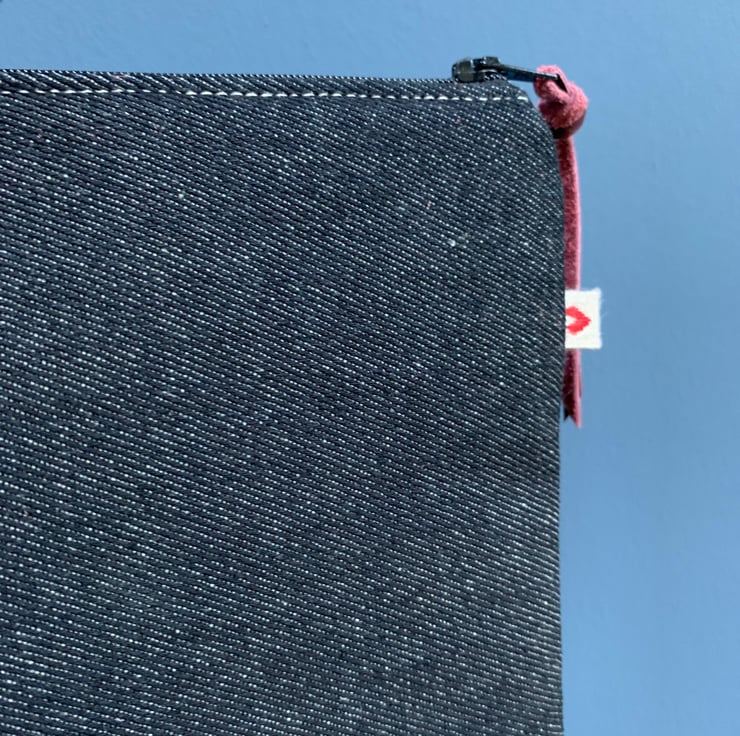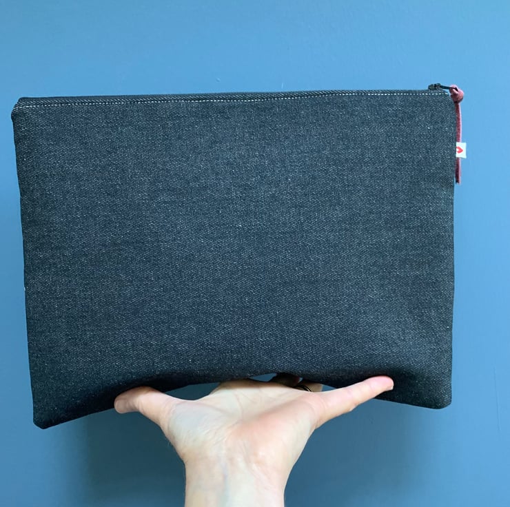One of a kind large zip pouch in black denim and