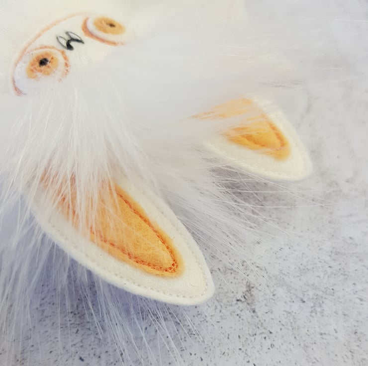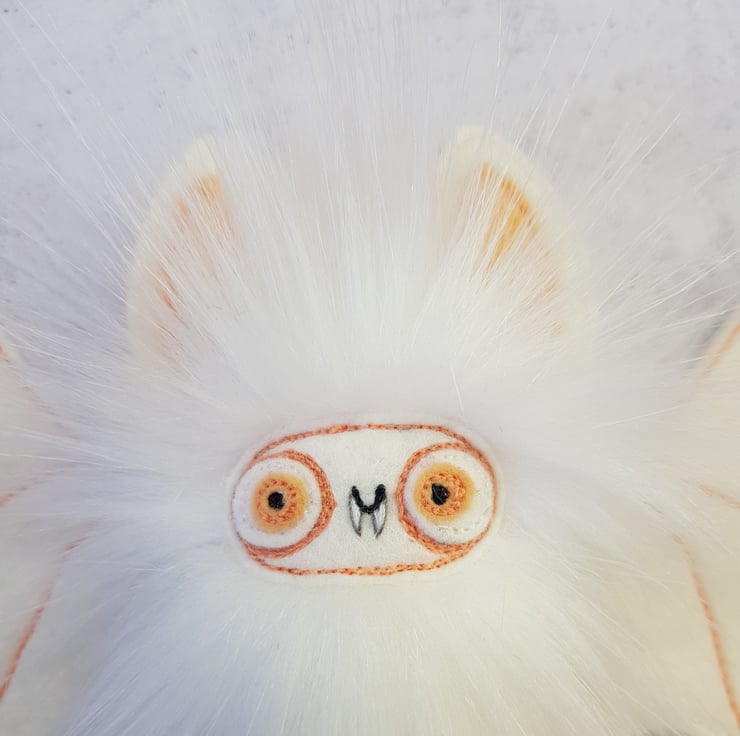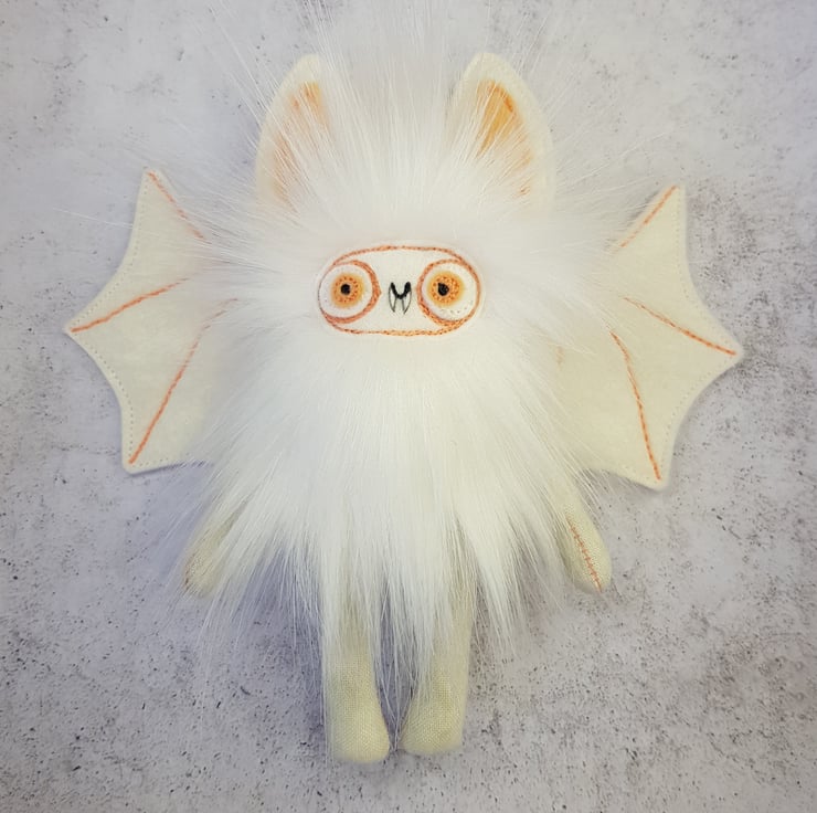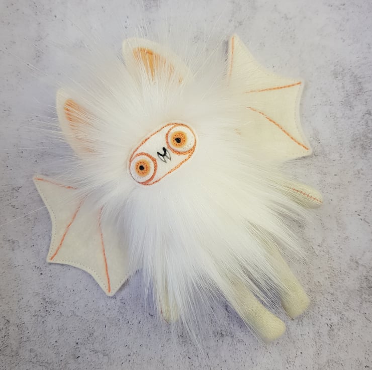 Bat art doll with free motion embroidered felt face and hand cut felt wings and ears. This art doll is made from the softest luxury faux fur with bumbleberries print cotton arms and legs. Bat measures roughly 15cm tall with a 15cm wingspan. Bat comes with a clear nylon thread hanger. These bats can be displayed from their hangers or can sit unaided by putting their wings behind them. Designed and created by myself in my home workshop in a coastal town in Pembrokeshire. This listing is for one bat only. This bat is not a toy and meant for decorative purposes only. Sent in recyclable and recycled packaging.