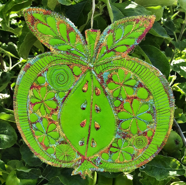 Made from hand dyed Egyptian cotton and silks and sewn using the free machine embroidery technique,.