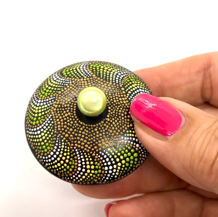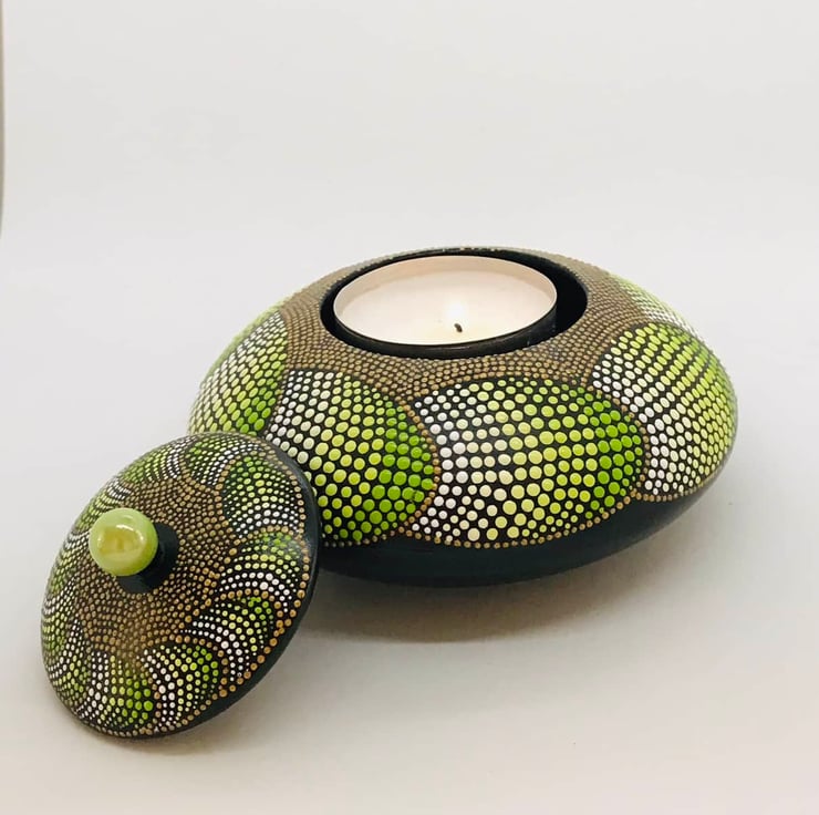 I have hand painted this design in the style of dot art and completed it with two coats of satin varnish to protect from dust and UV sunlight.