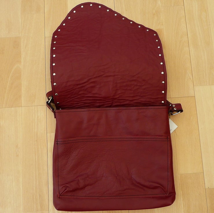 Leather crossbody bag rivet detail crossbody bag unisex bag shoulder bag deep red leather bag with poppy lining