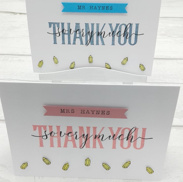 A set of 4 personalised cards and envelopes whiCh are perfect to show your appreciation to all members of the teaching profession.