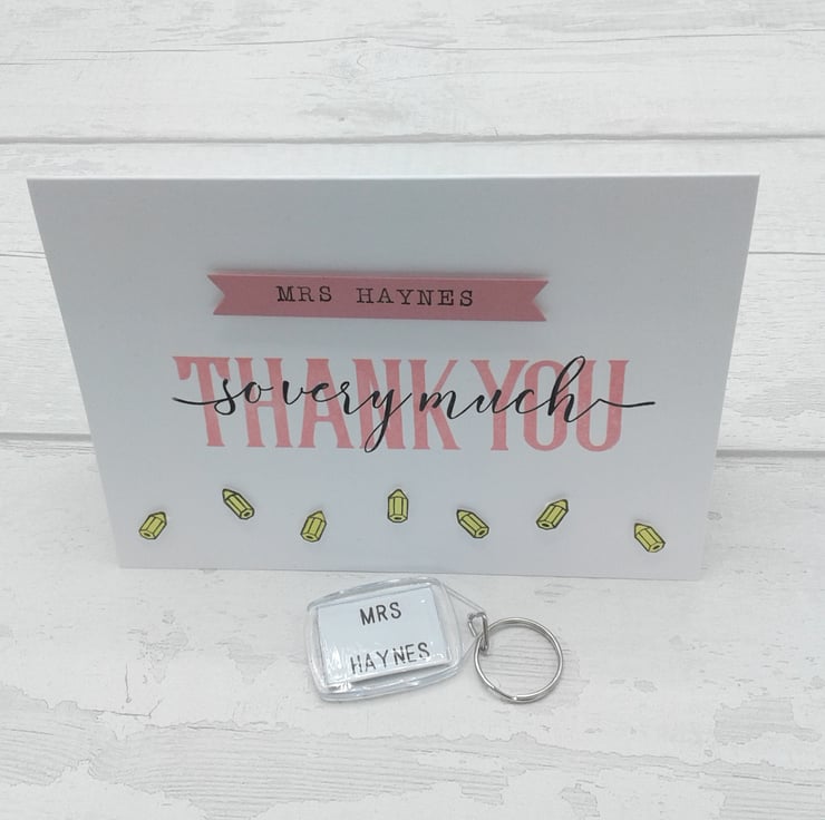 This listing is for a personalised thank you card and envelope together with a personalised key ring.