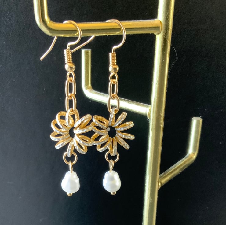 Featuring mini fresh water pearls to add a classic look to a modern design.They are light weight on gold plated ear wires.