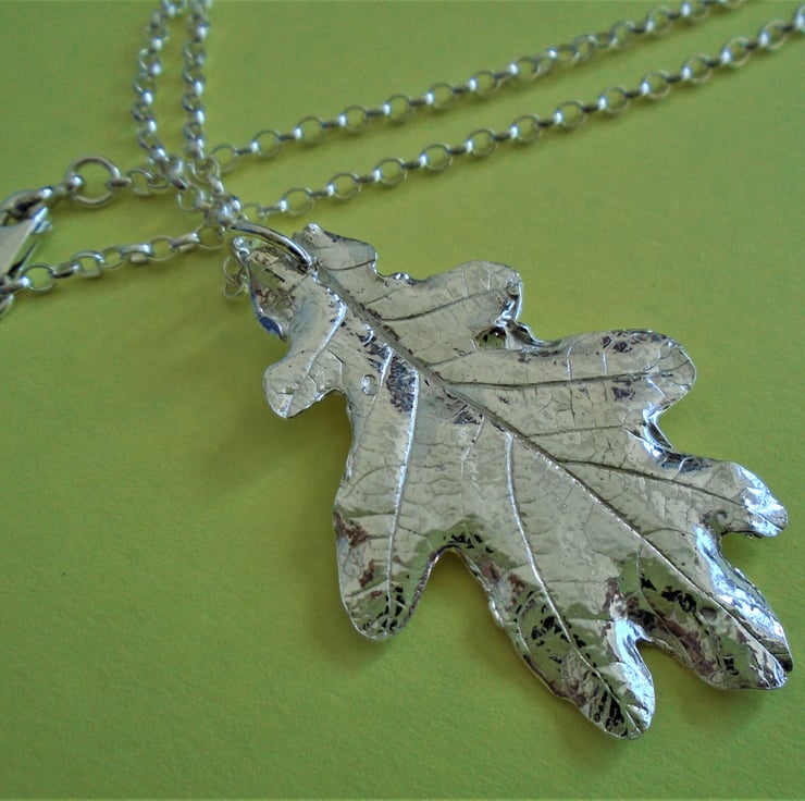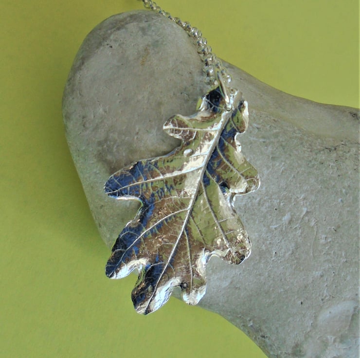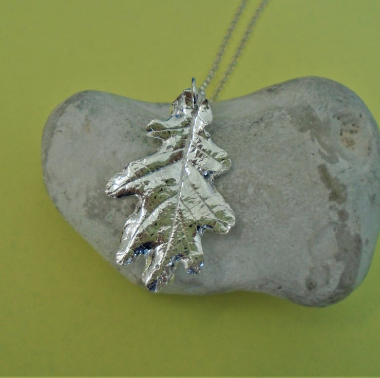 Made by coating a real oak leaf in recycled fine silver (pure silver), leaving a detailed replica after firing.