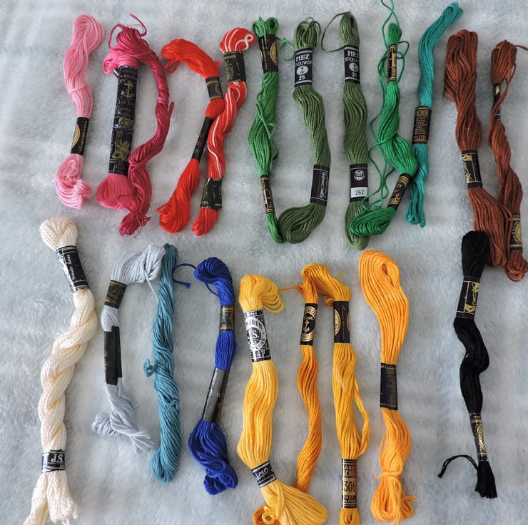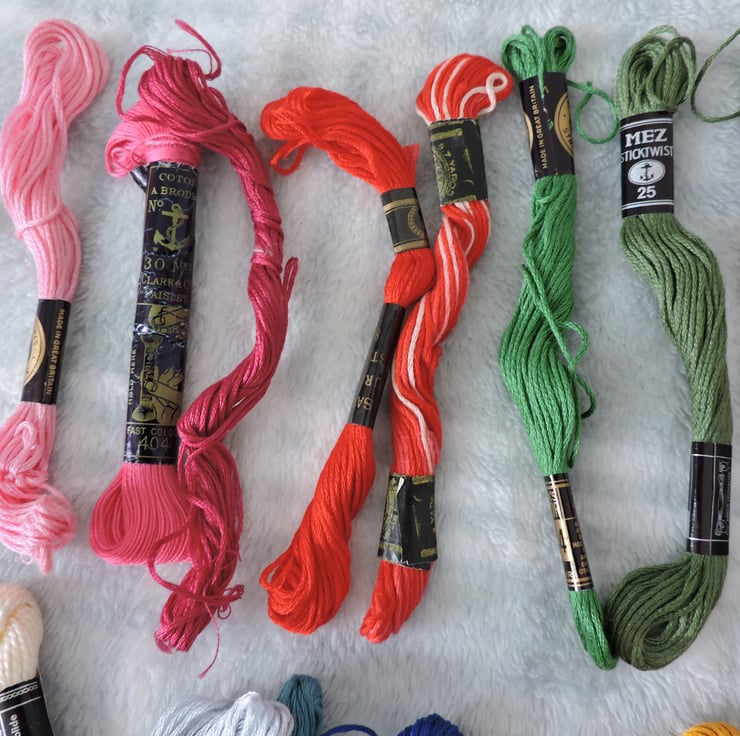 An assorted lot of embroidery threads. Full and part skeins. A variety of colours.