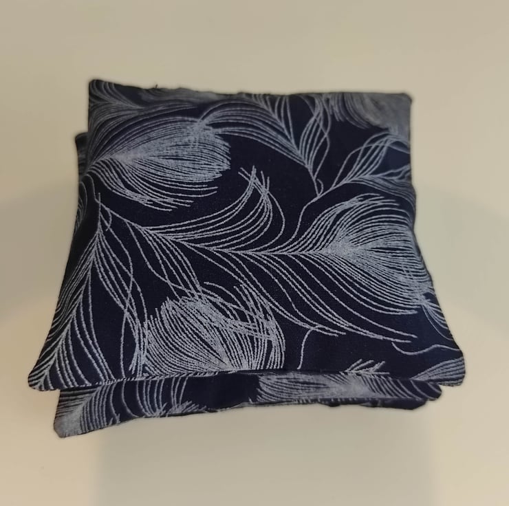 A set of 3 x 4" lavender bags, made from navy blue cotton fabric printed with feathers. Each one filled with French lavender. The perfect little gift!