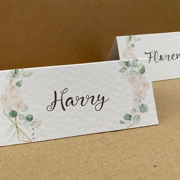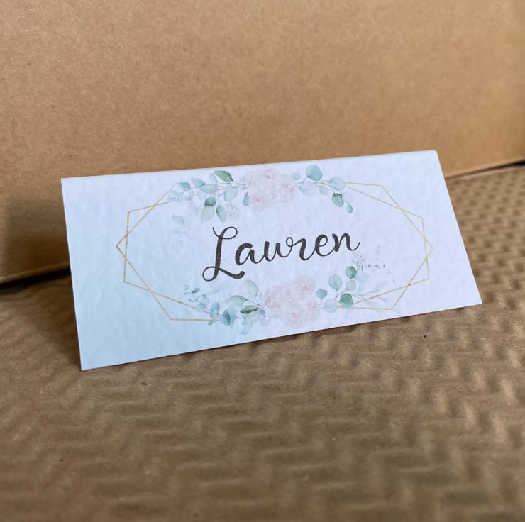 6x blush rose EUCALYPTUS name place CARDS geometric table setting wedding decor