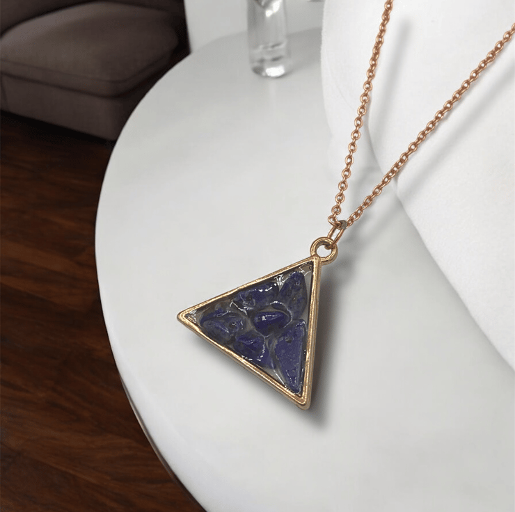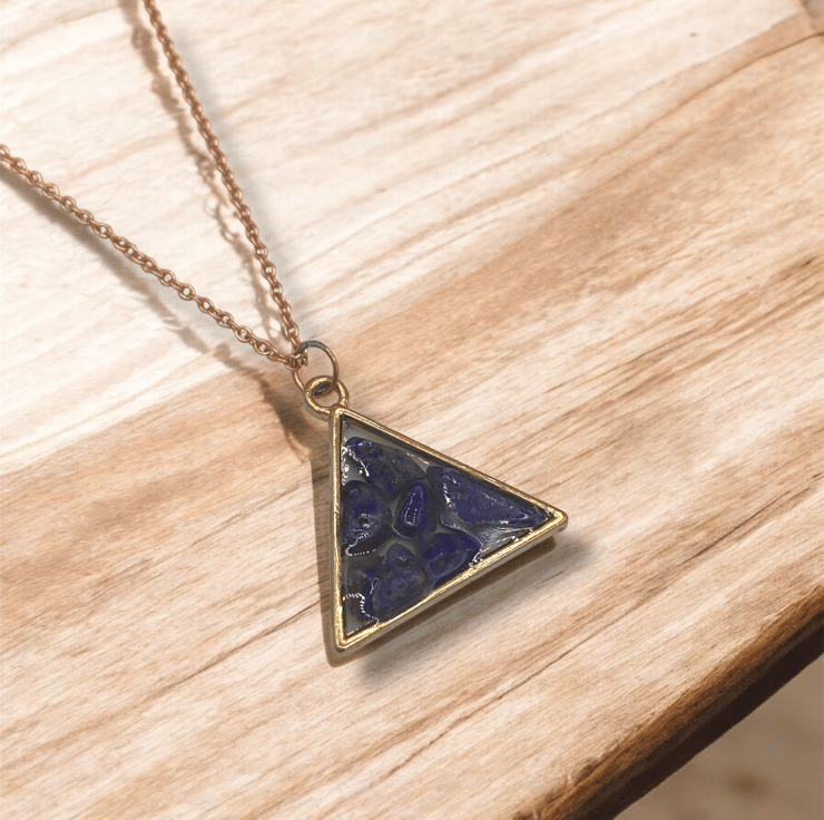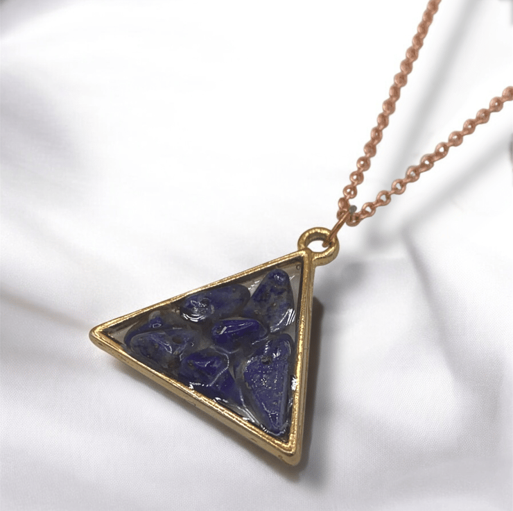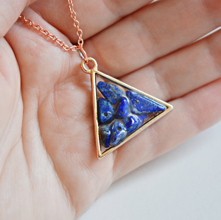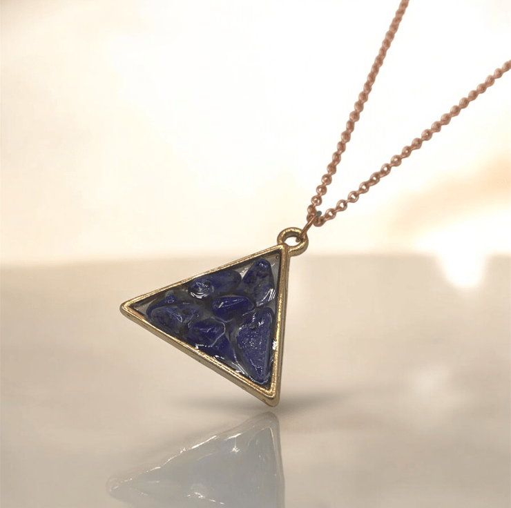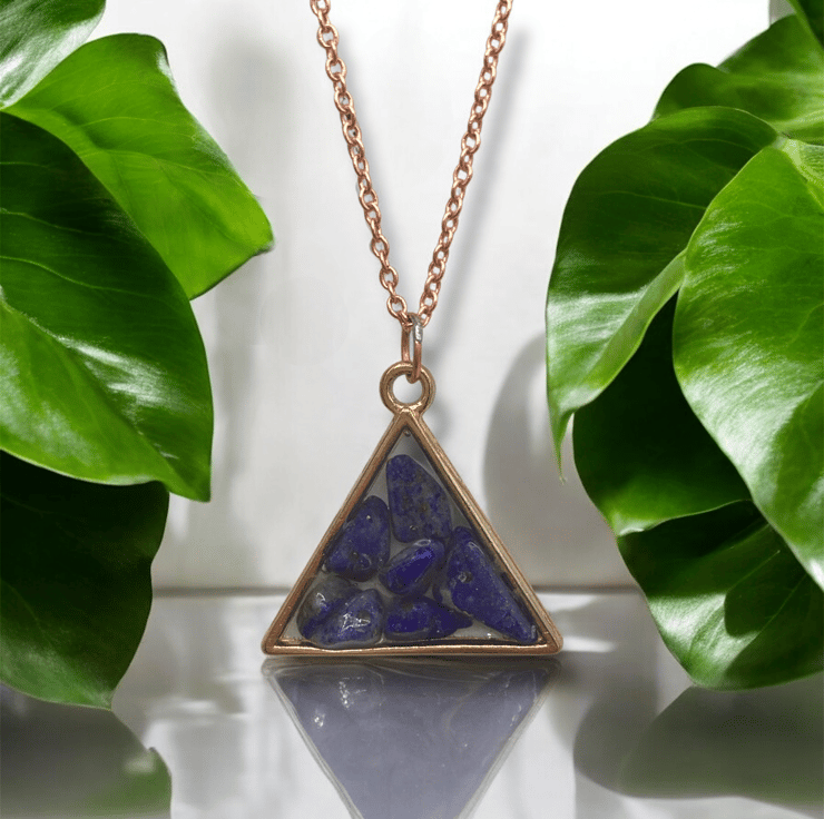Blue Lapis Lazuli & Rose Gold Triangle Pendant - Zodiac and Anti-Anxiety Gift