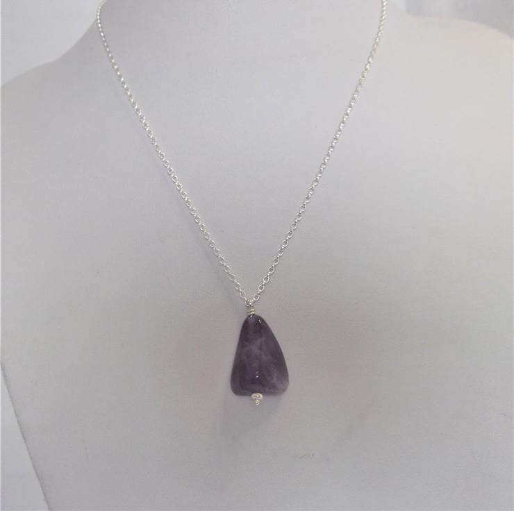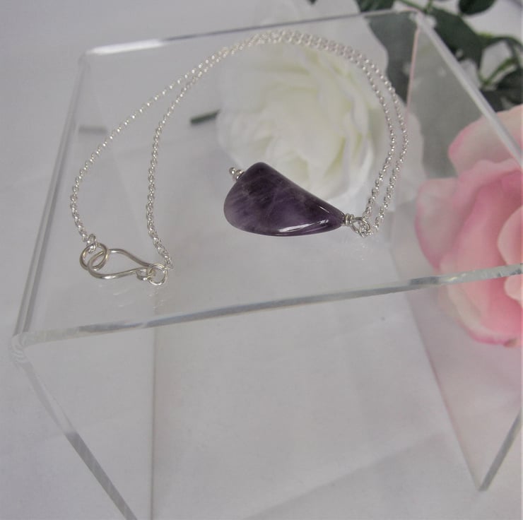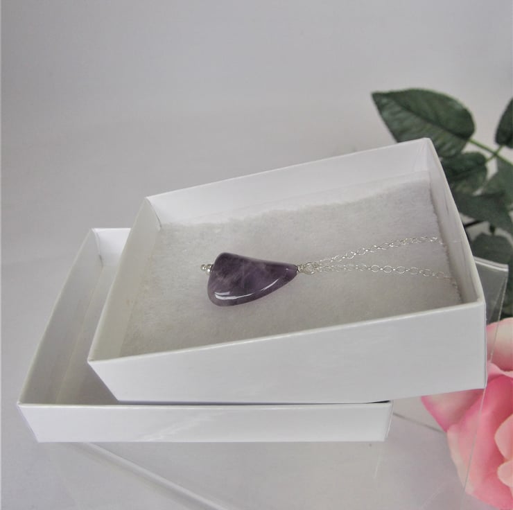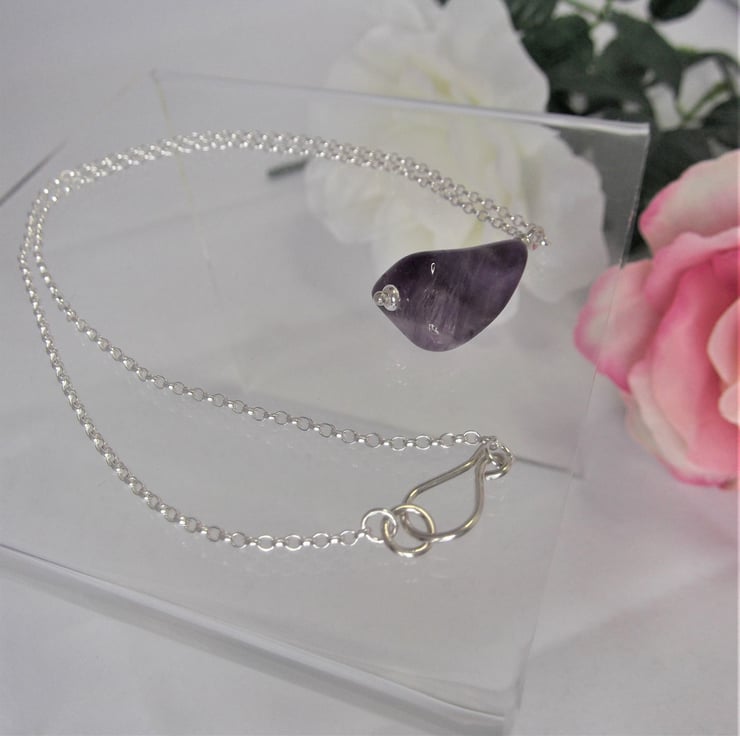 This simple but elegant necklace has been made using an Amethyst tumble stone and sterling silver wire and chain.