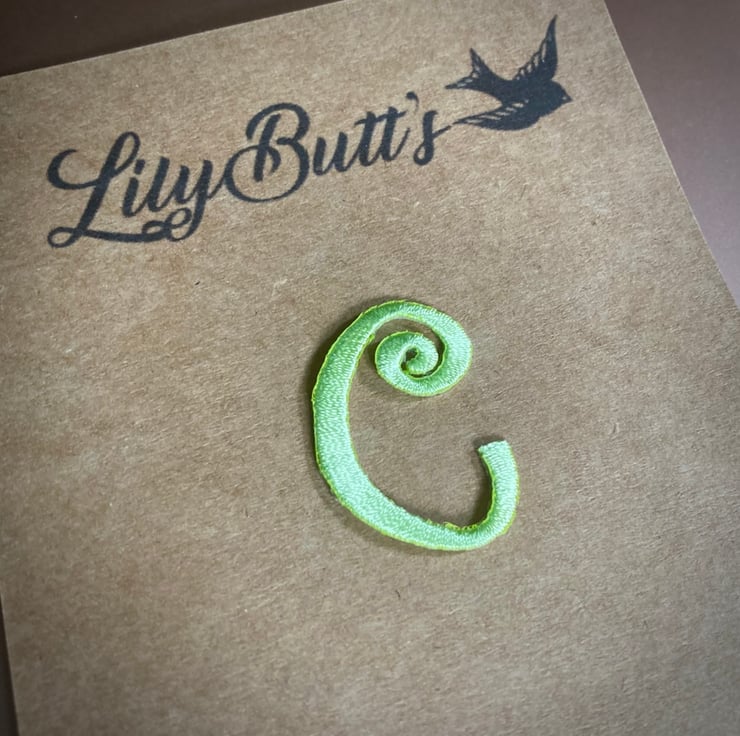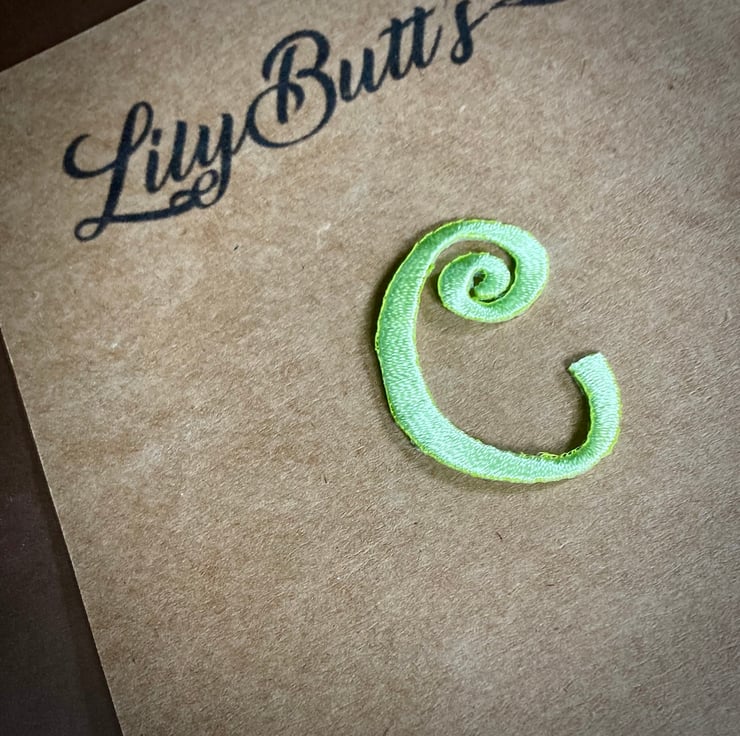 Embroidered Letter C Iron on Patch 3.5 cm x 2.5 cm Lime Green