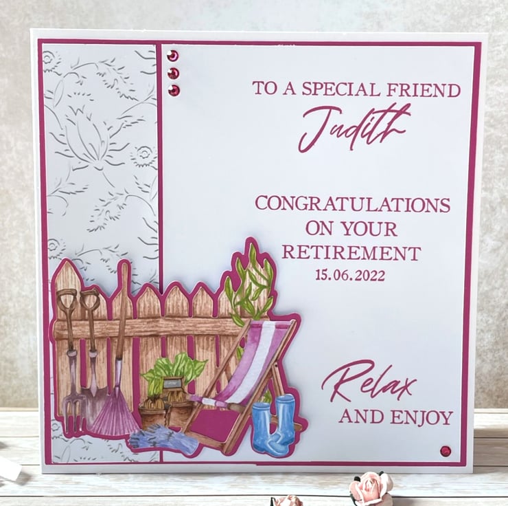 A personalised, handmade Retirement card suitable for any female friend, relation or colleague.