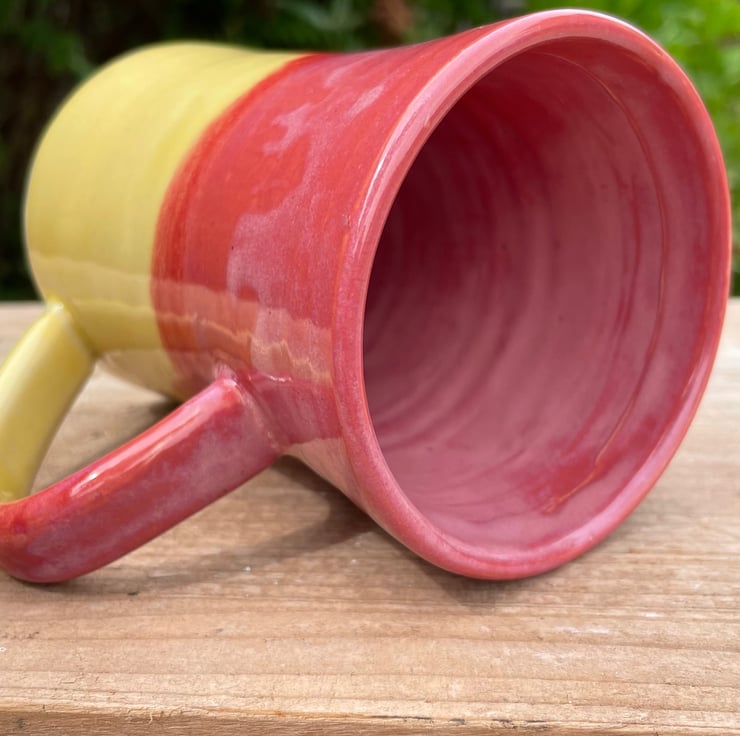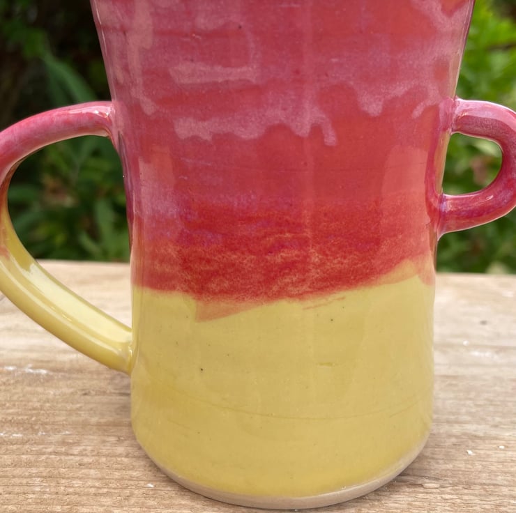 Made with stoneware clay and thrown on the wheel. It has been glazed with beautiful summery Rhubarb and Custard inspired glaze and would make a wonderful gift or treat for yourself!