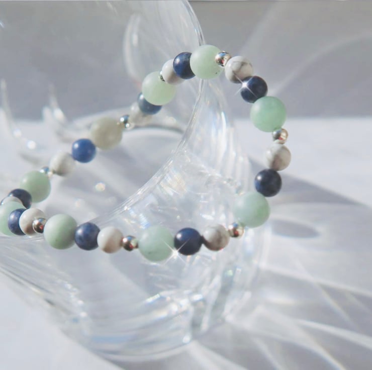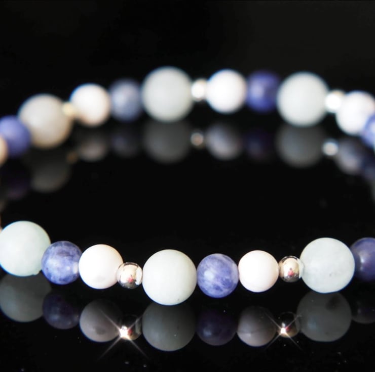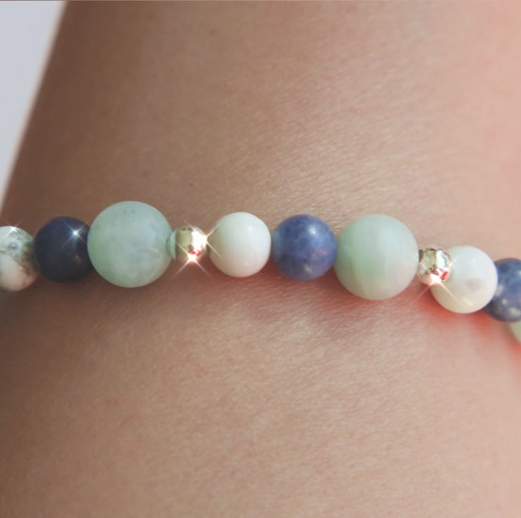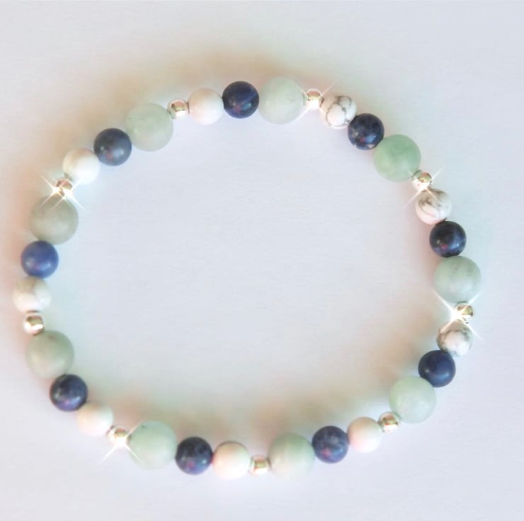 Bracelet made with 6mm Morganite, 4mm Lapis Lazuli, 4mm White Howlite.