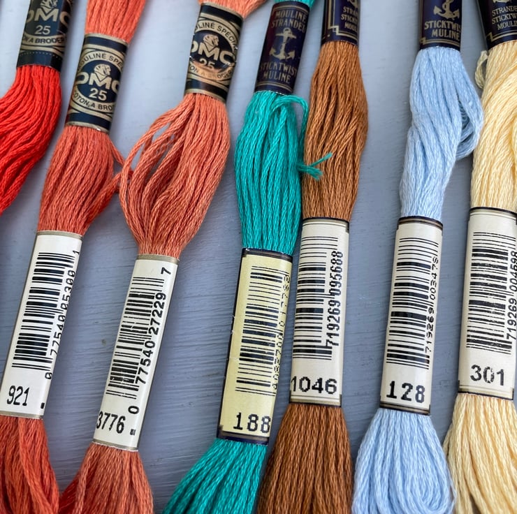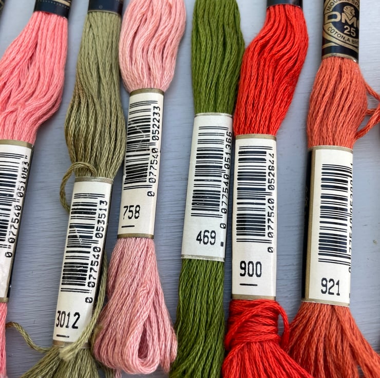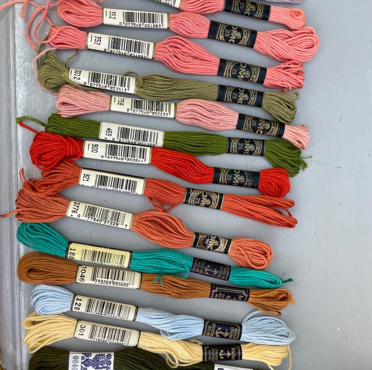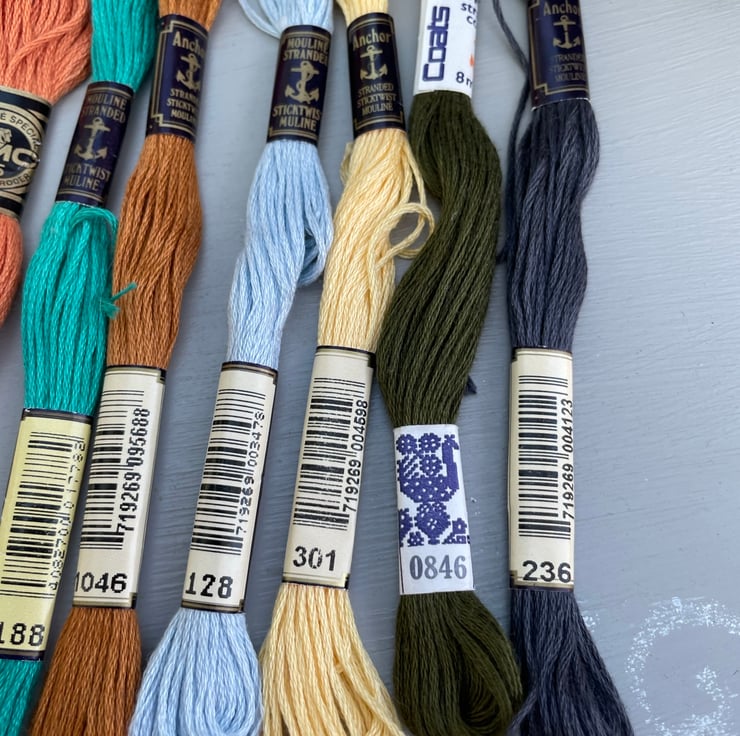 A selection of skeins of stranded cotton embroidery threads for cross stitch or needlework. There are several colours from DMC and anchor. All are new but some may have had a small amont or thread removed hence the bargain price.