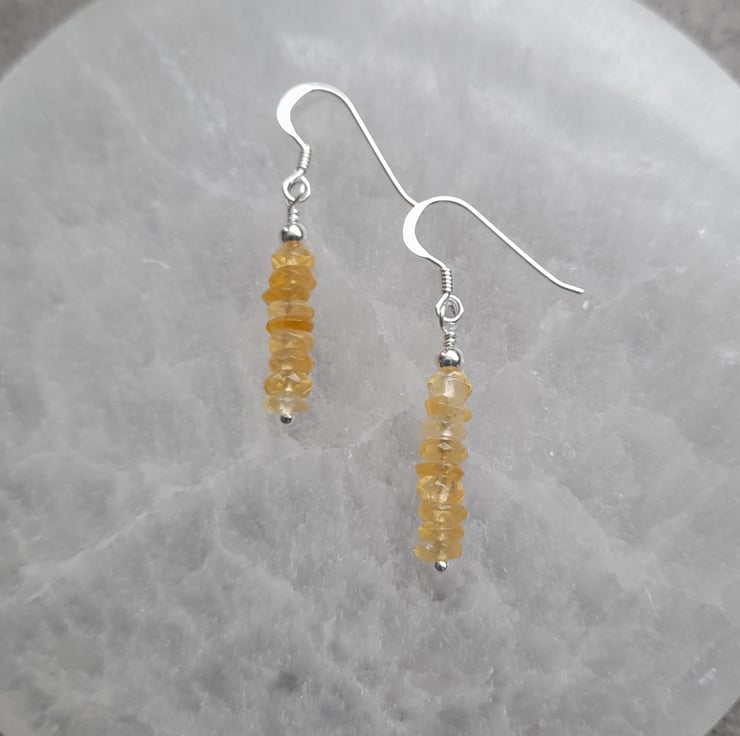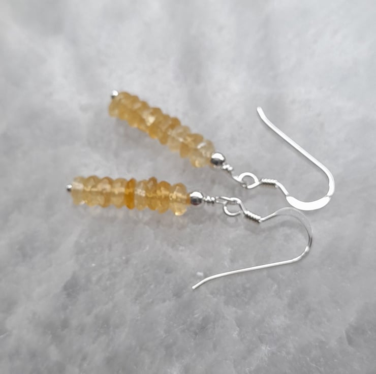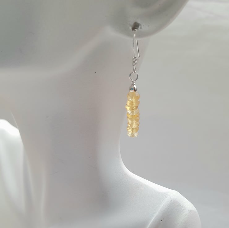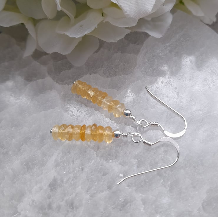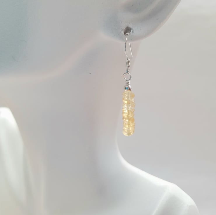 Drop earrings with pale golden yellow Citrine faceted semi precious gemstones which gives them a little sparkle are attached to sterling silver ear wires