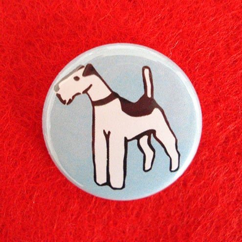 Cute Wire Fox Terrier on a lovely shiny badge with a metal pin back.